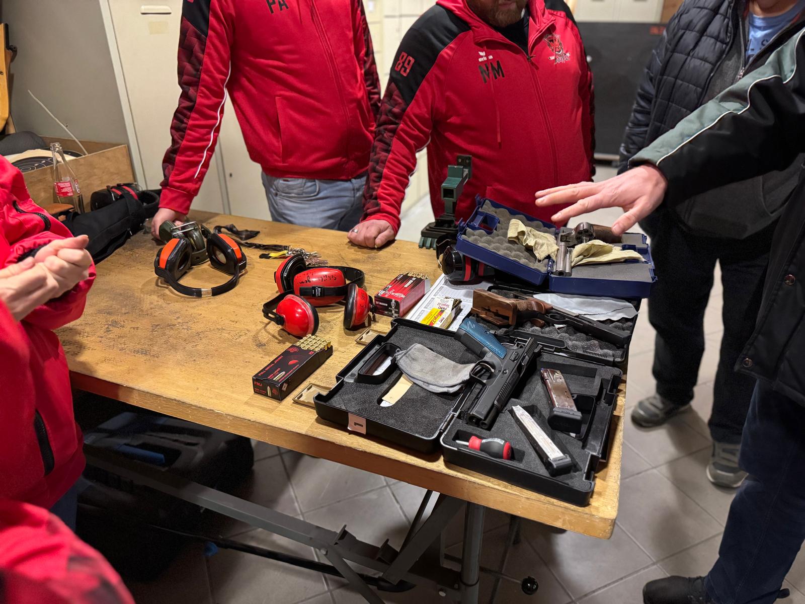 Geschossen wird mit der Schnellfeuerpistole cal.22 auf Zeit, in einer Entfernung von 25 Meter auf 5 Scheiben.